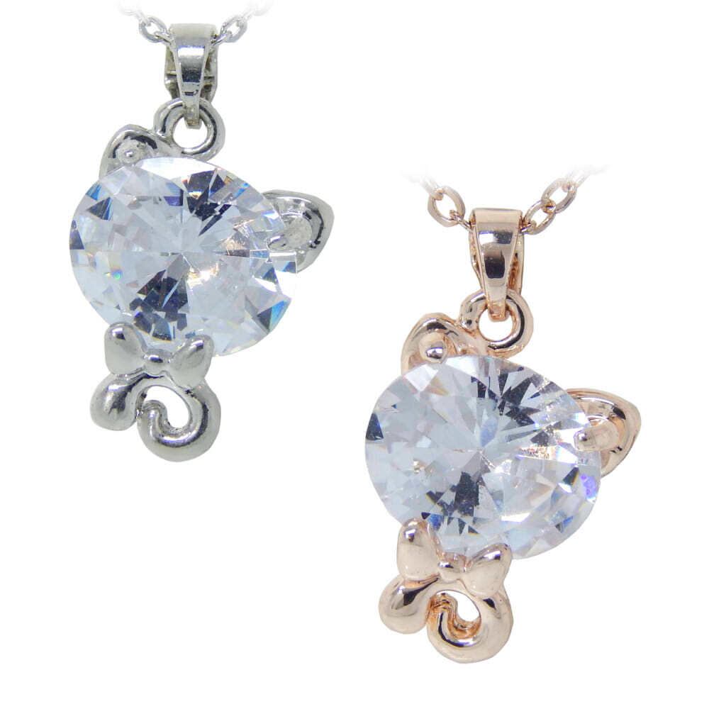 【N2-SP30】❀首を傾げた猫ネックレス❀大粒ジルコニアペンダント❀