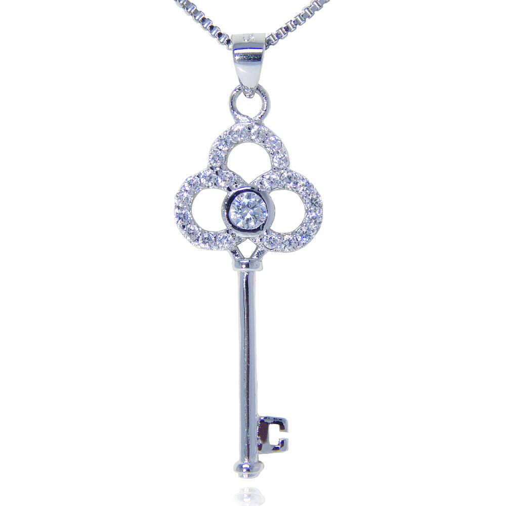 三つ葉キー23連CZジルコニアネックレス❀ペンダントシルバー925【N1-50】