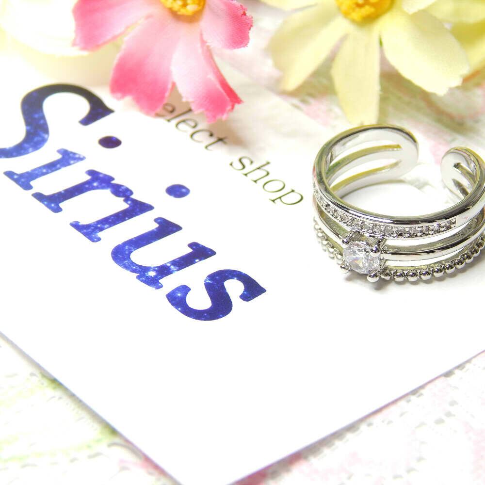 【RF1-10】❀15連三層CZジルコニアリング❀フリーサイズ指輪❀