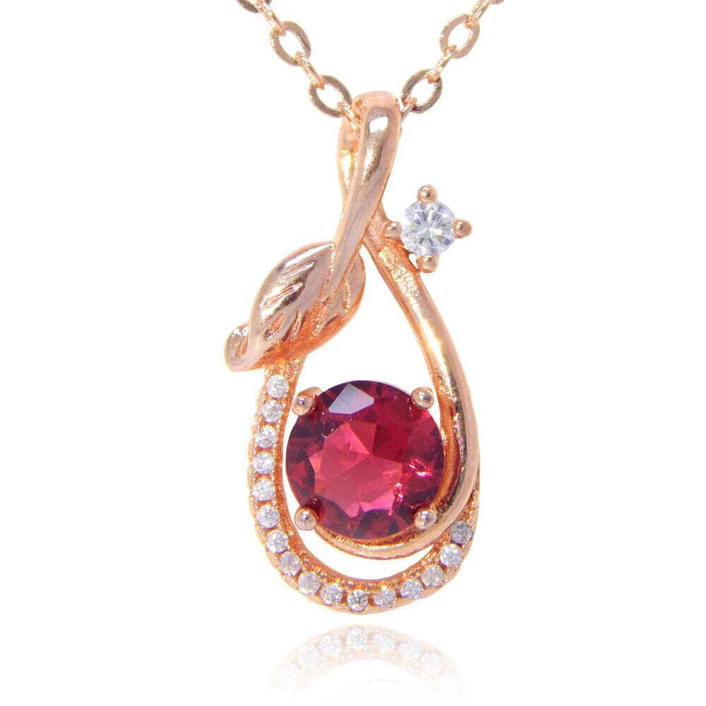 【NC-RTE66】❀リーフGold PlatedCZルビーペンダントネックレス❀刻印有ピンクゴールド❀