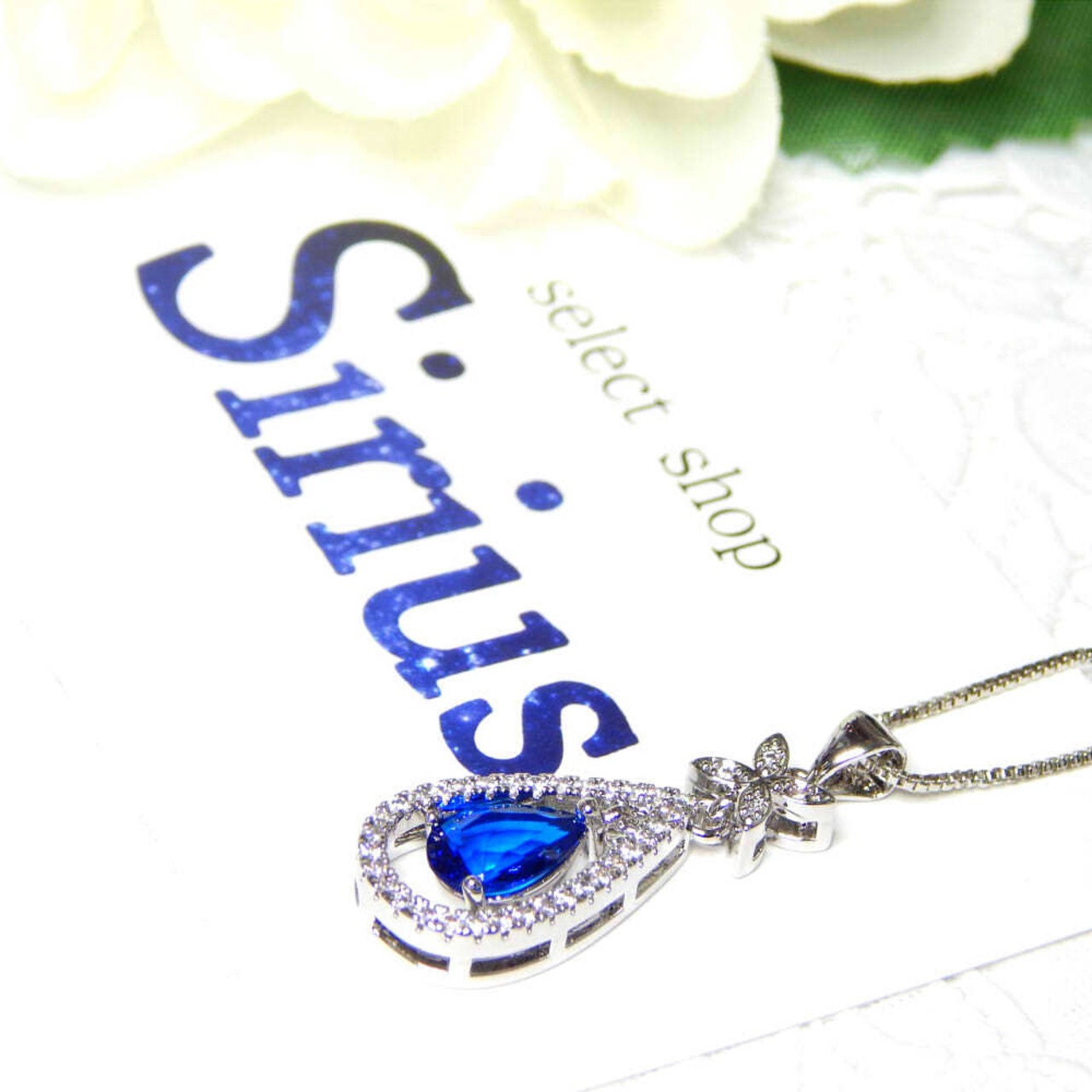 【NC-SA2】 ❀ティアドロップCZサファイアブルーネックレス❀