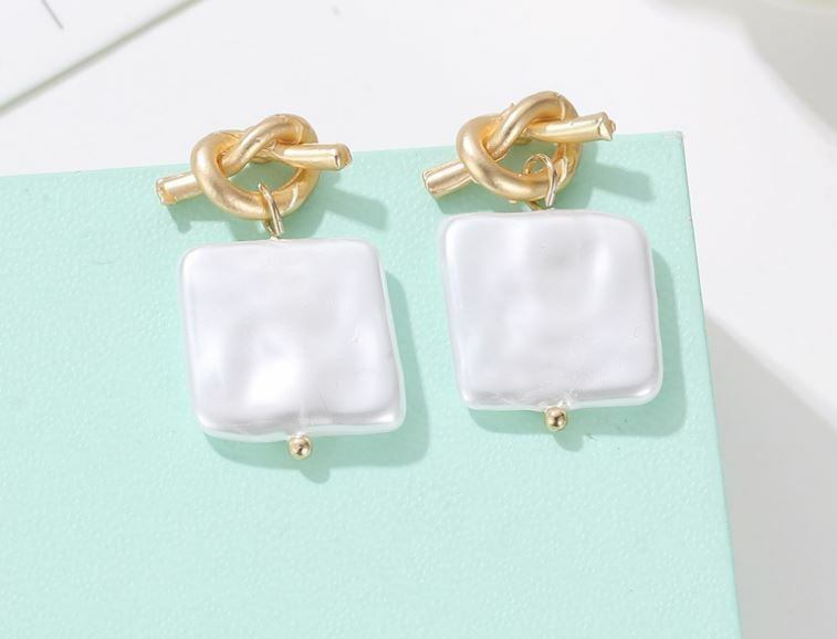 【PC-C62】❀結び目ピアス❀スクエア淡水真珠Gold Plated❀