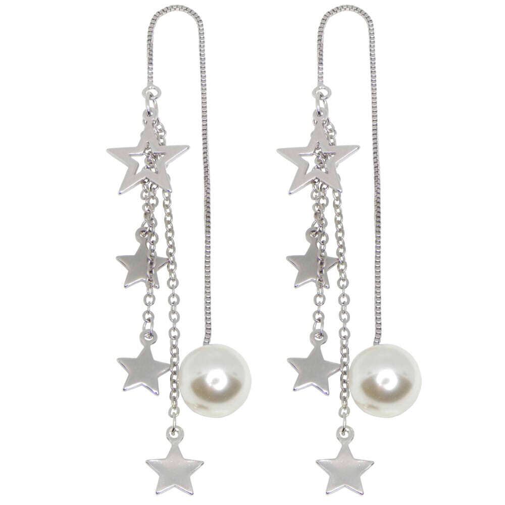 【P2-SP2】❀4連星のユニークなデザインピアス❀揺れる淡水真珠❀