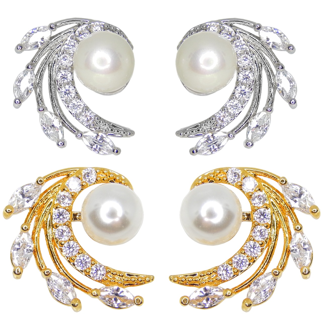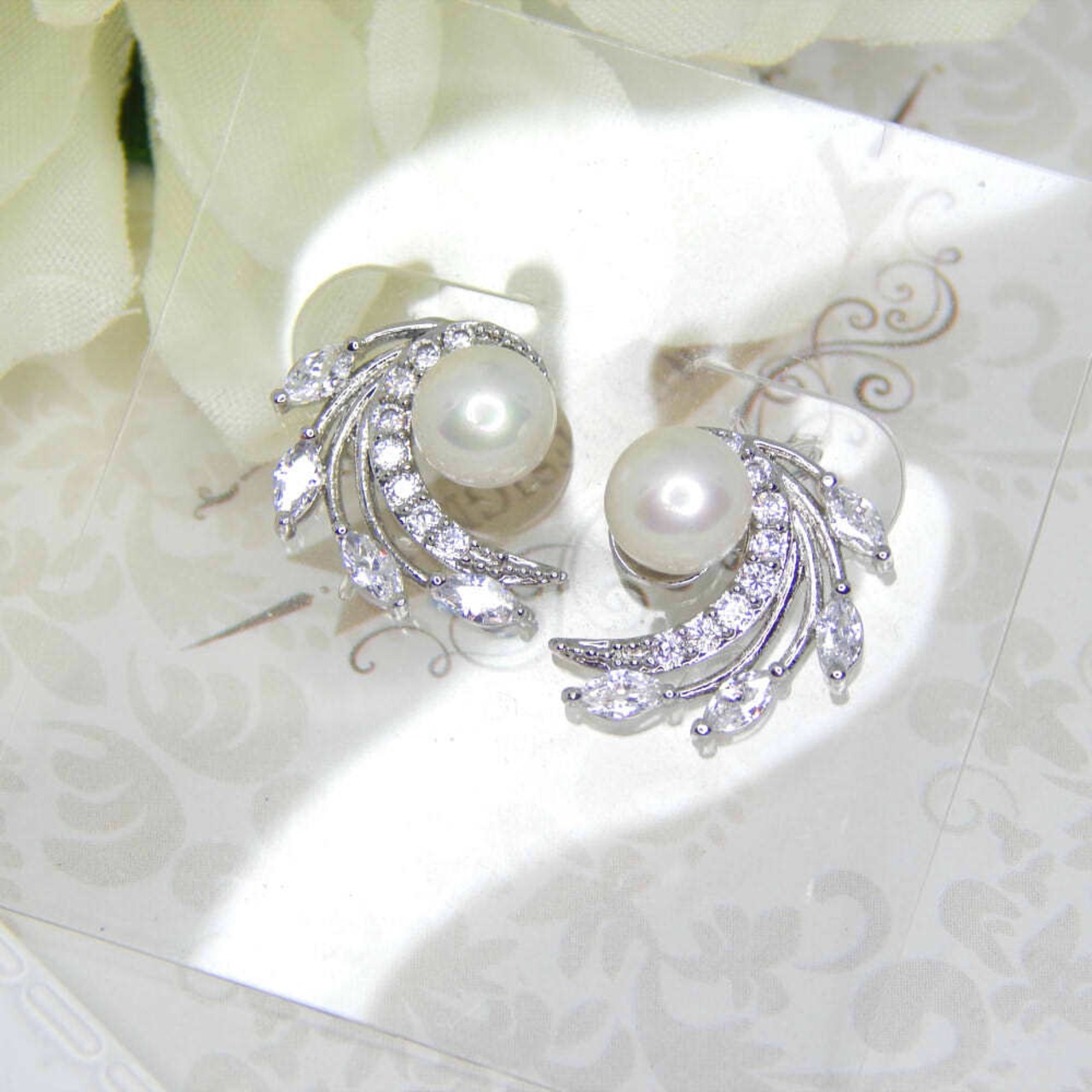一粒パール包みデザインCZジルコニアピアス【P2-SG17】