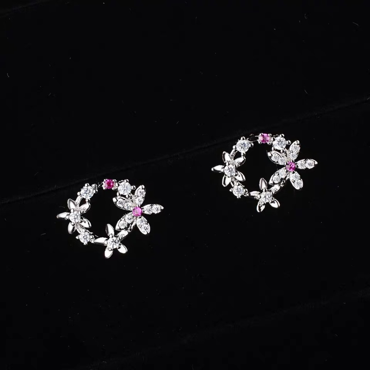 【PC-C107】❀3連フラワーリースルビーローズジルコニアピアス❀