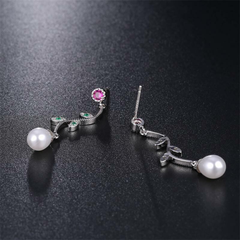 【予約】❀リーフ&ドロップデザインCZルビージルコニア&淡水パールピアス❀シルバー925❀