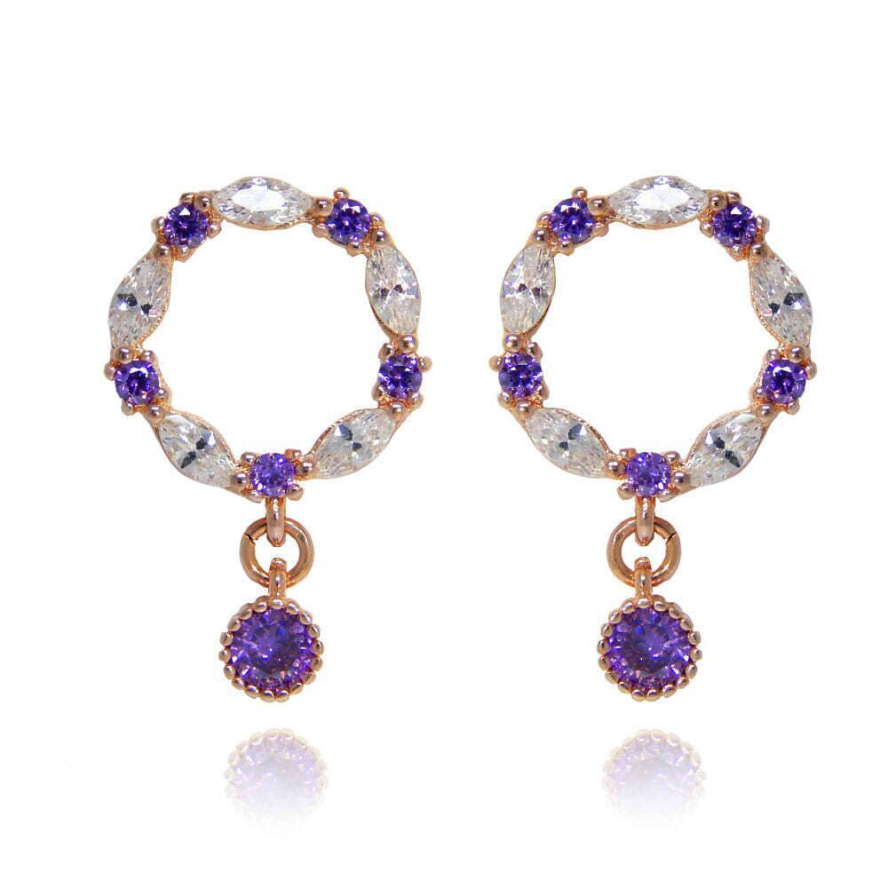 【PC-C19】❀揺れる一粒リースデザインCZアメジストジルコニアピアス❀