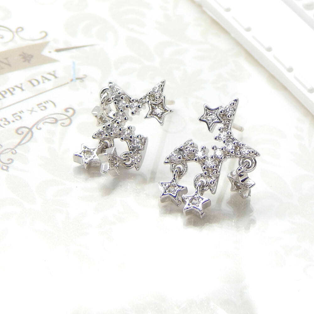 【P1-70】☆欠けた星&揺れる3連スターデザインCZジルコニアピアス☆