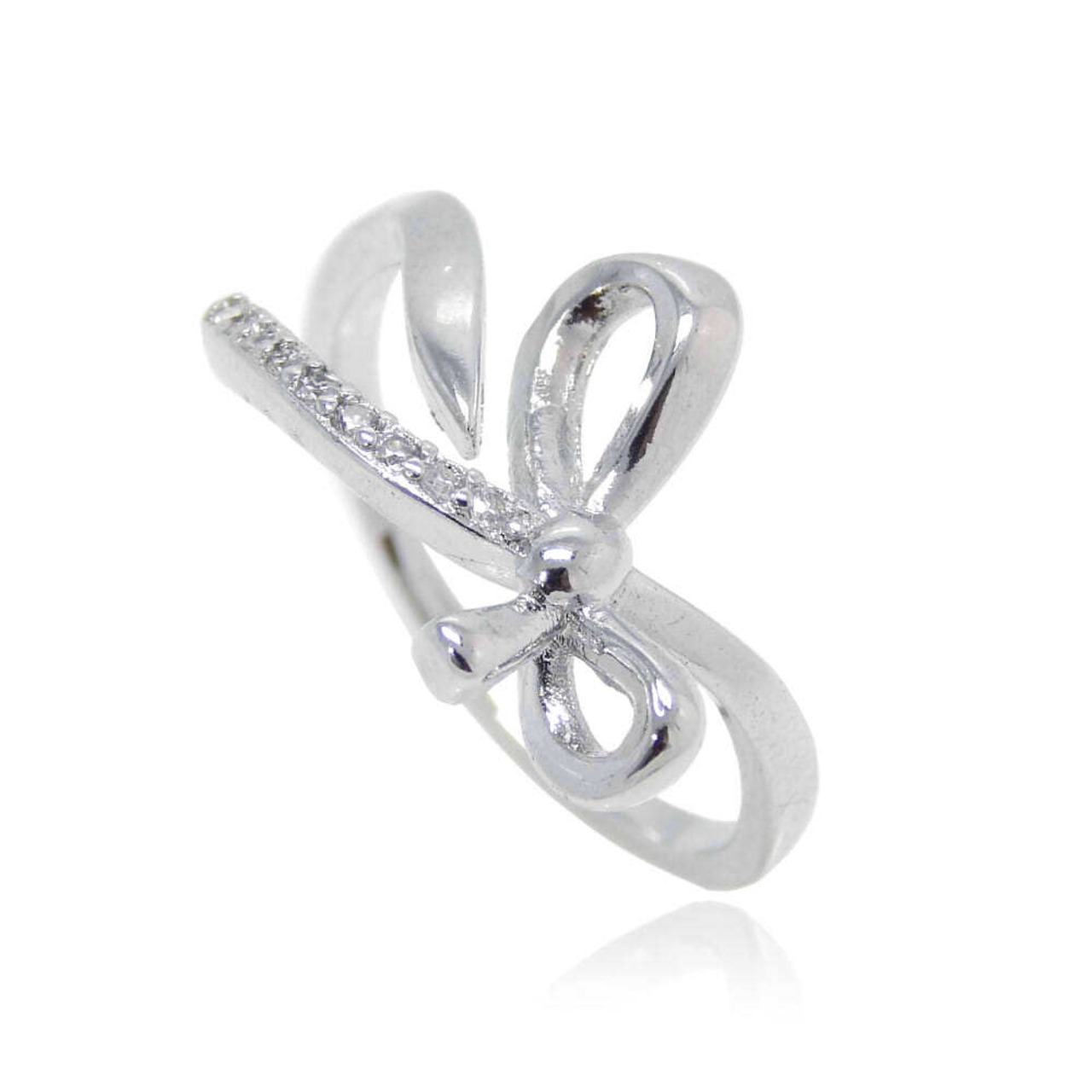 【RF1-26】❀蝶結びデザインCZジルコニアリング❀フリーサイズ❀