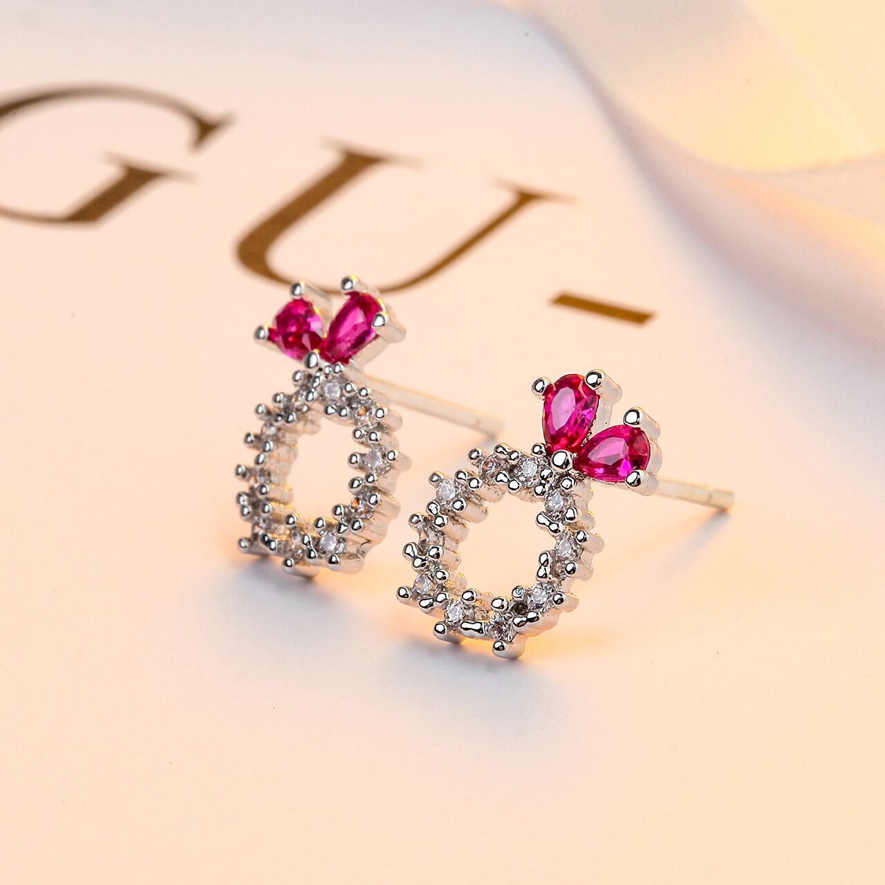 【PC-C125】❀2連ルビーローズジルコニアピアスかわいいリボンデザイン❀