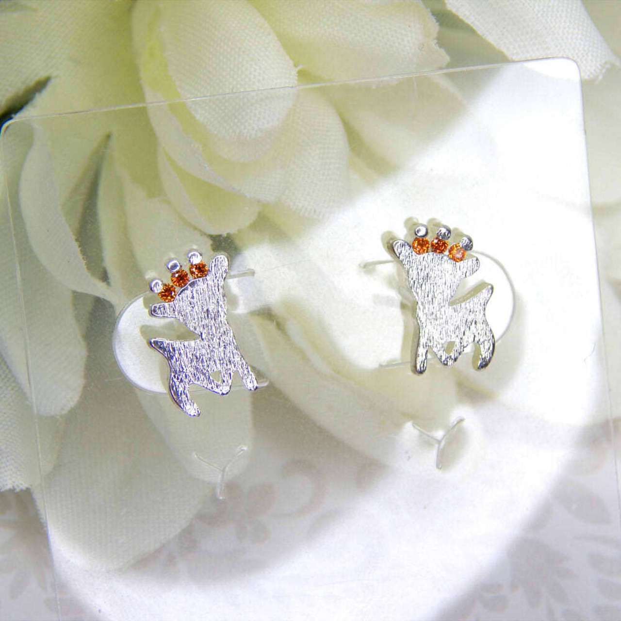 「奈良の人気者!」小鹿好きにはたまらない3連CZピアス❀stone pierced【P2-C26】