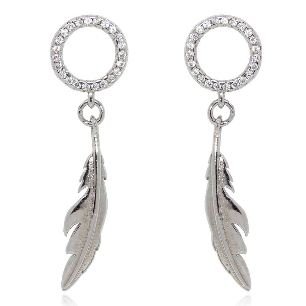 【P1-91】❀ラウンドフレーム揺れる羽デザインCZジルコニアピアス❀