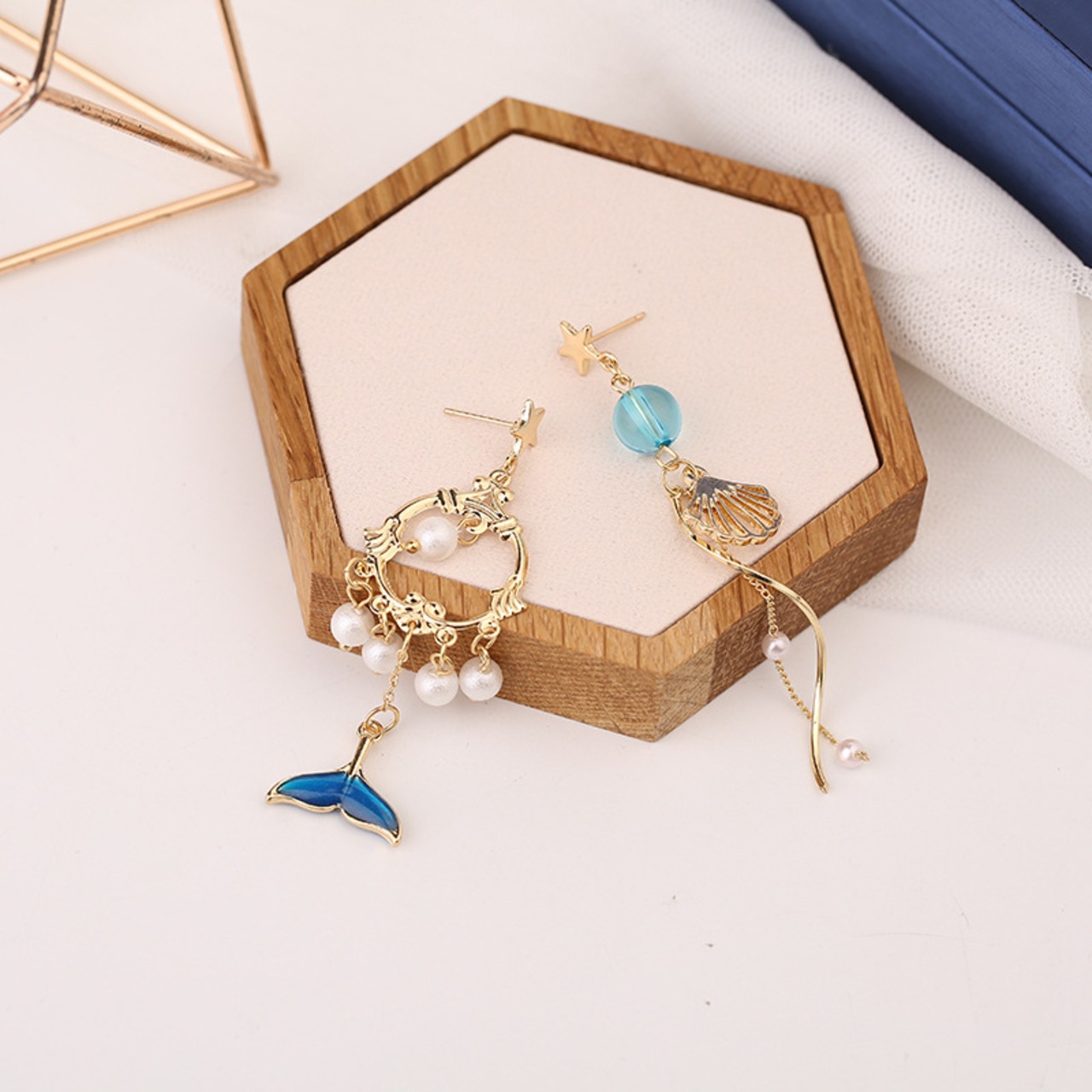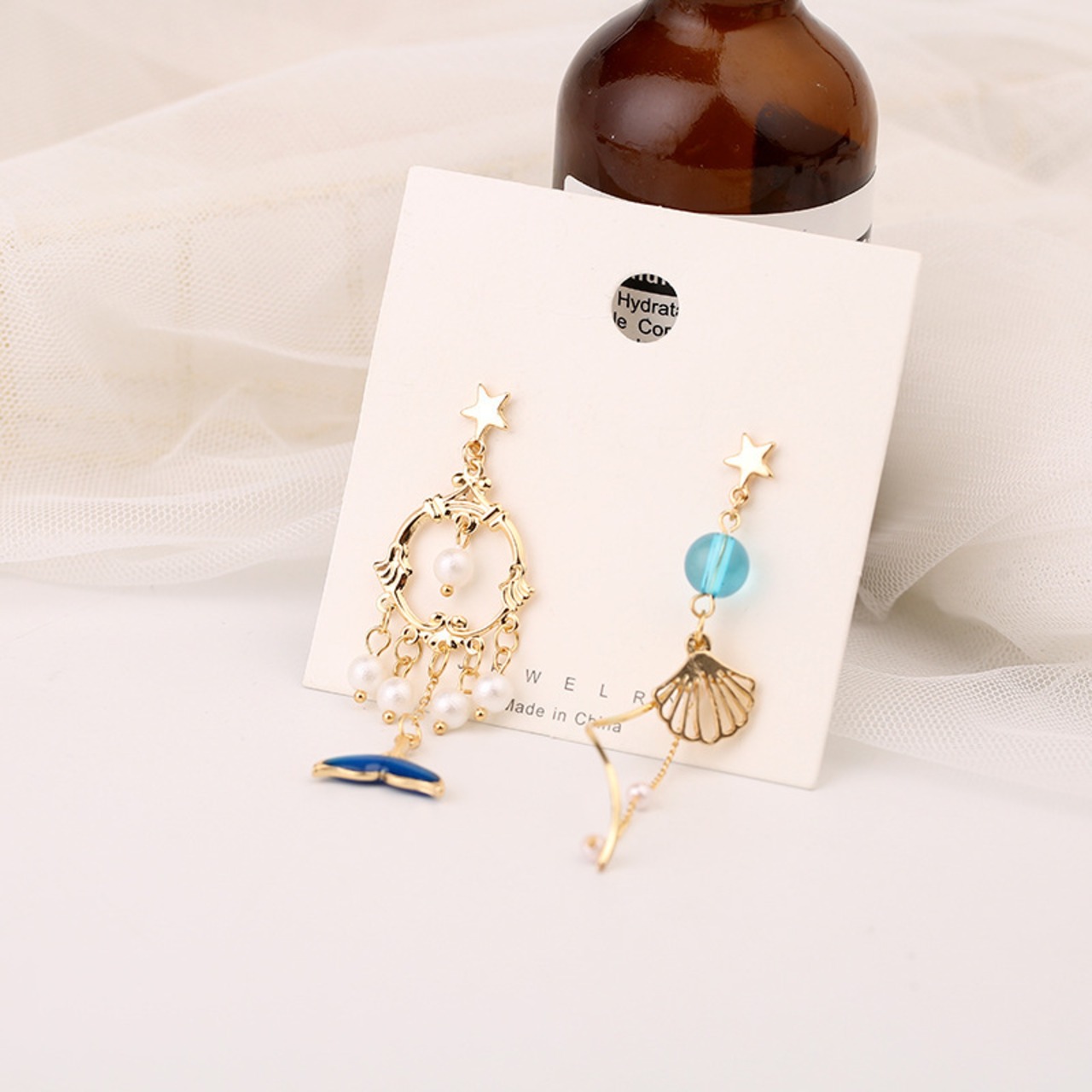 【PY1-17】❀揺れるコットンパールマリン風デザインイヤリング&ピアス❀