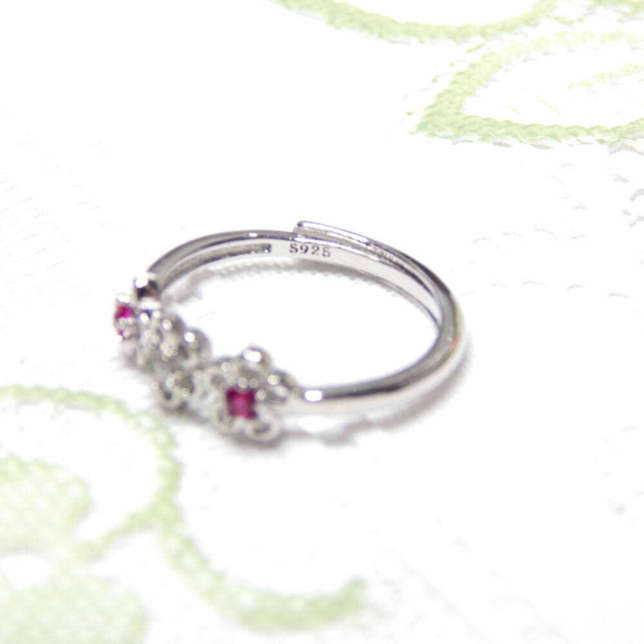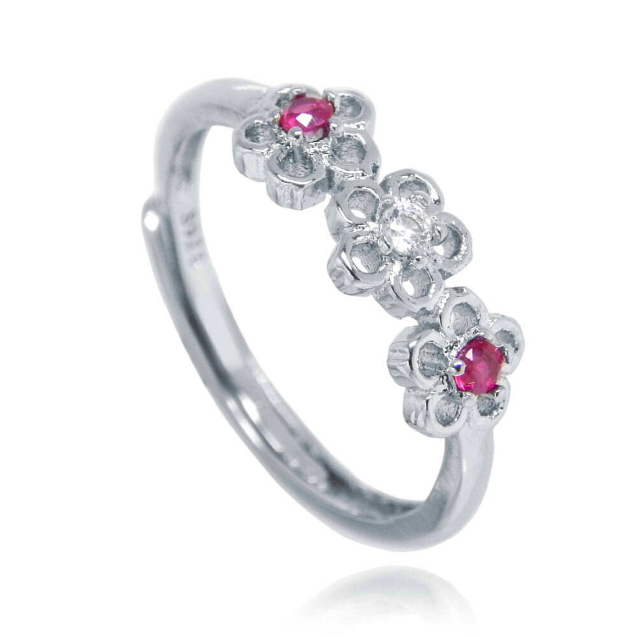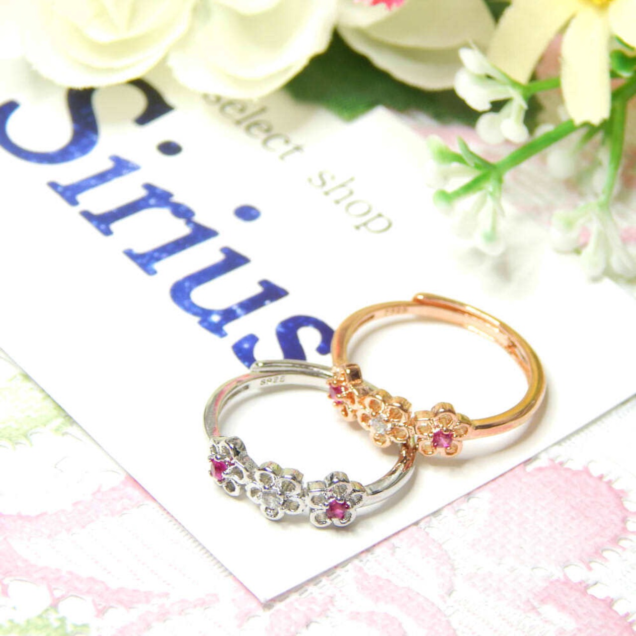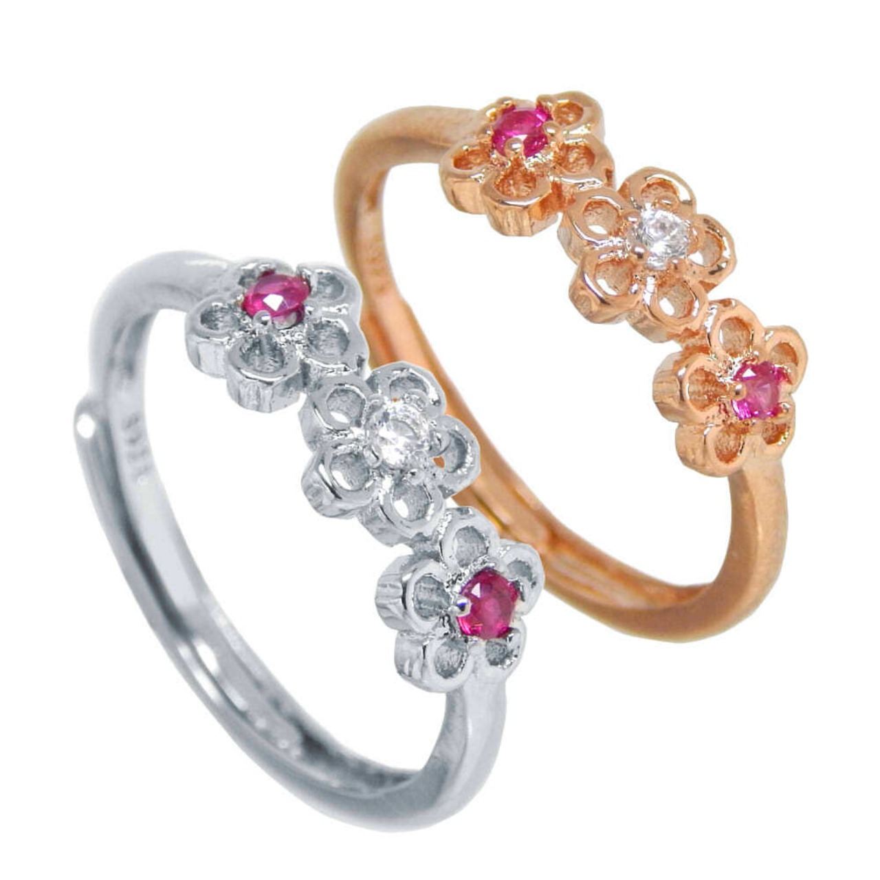 3連桜デザインルビーローズジルコニアフリーサイズリング【RF2-11】