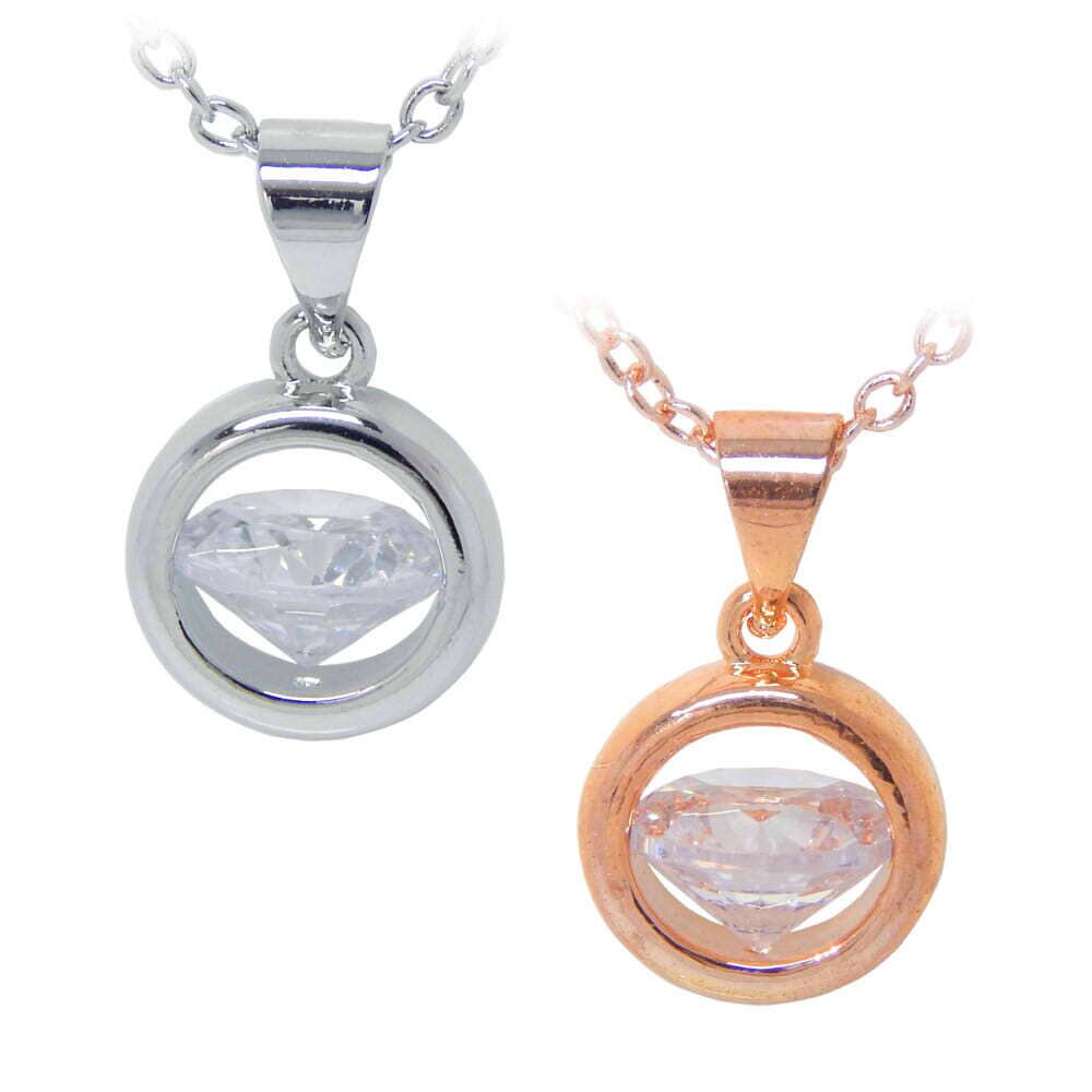 エレガントな印象を演出するラウンドフレーム一粒CZジルコニアネックレス。