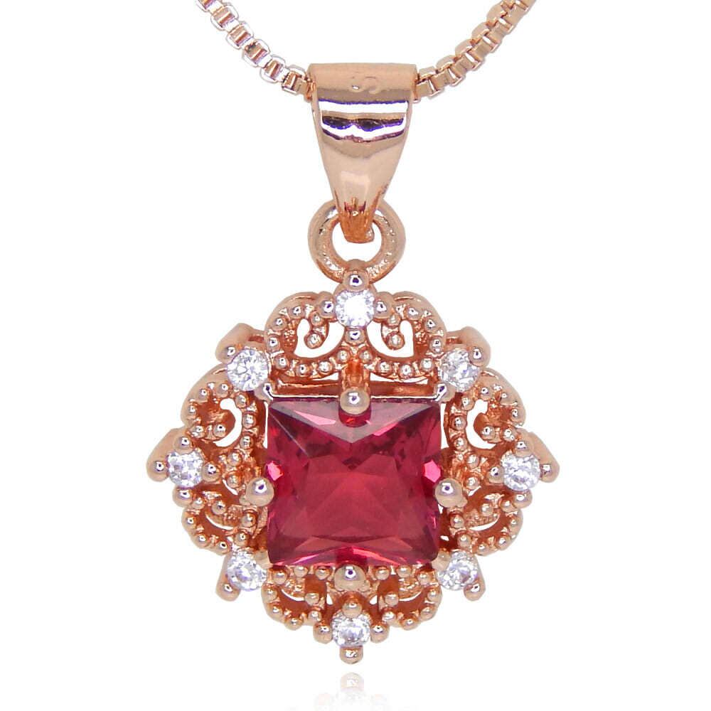 【NC-RTE68】❀レーススクエア型ルビーCZジルコニアネックレス❀Gold Plated❀