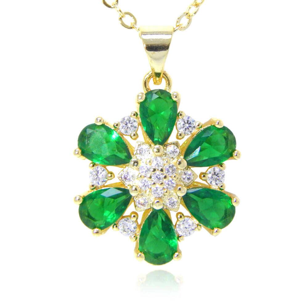 エメラルドフラワーCZジルコニアネックレス❀Gold Plated【NC-RTE49】