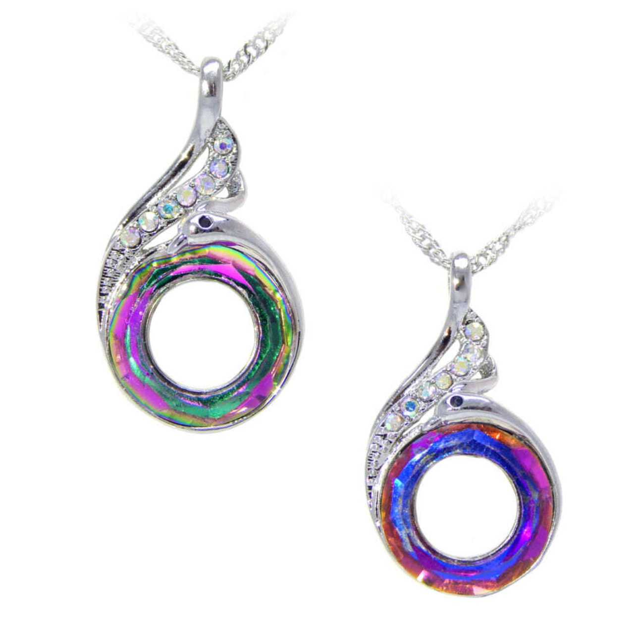 洗練されたデザインとエレガントな輝きが魅力の孔雀デザイン大粒リング型CZジルコニアネックレス。