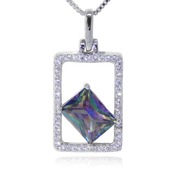 スクエアミスティッククォーツジルコニアが上品な輝きを放つ、クリスタルボックスデザインCZジルコニアネックレス。
