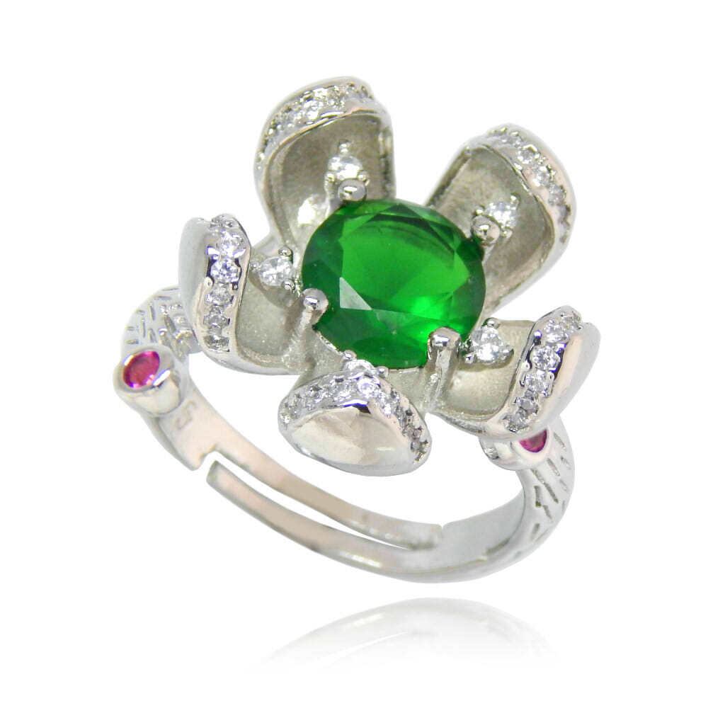 【RF6-1】❀大輪の花大粒CZジルコニアリング❀フリーサイズ❀