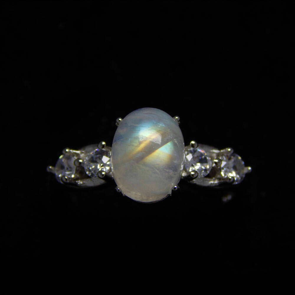 【RF1-C57】☽4石CZジルコニア&ムーンストーンリング☽フリーサイズ☽
