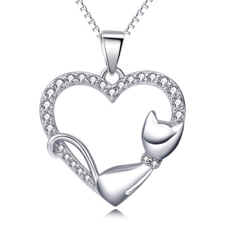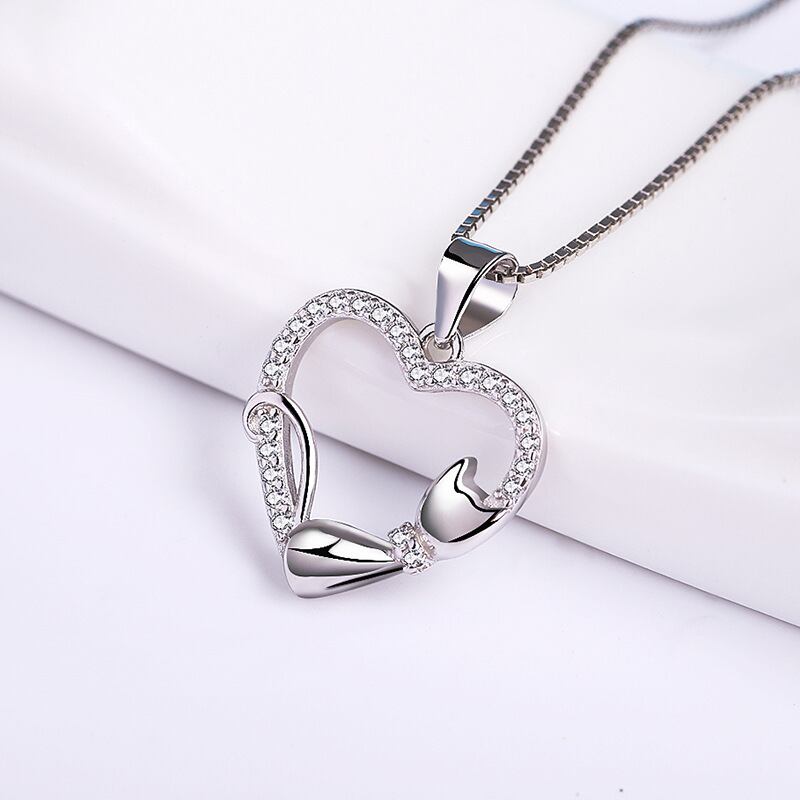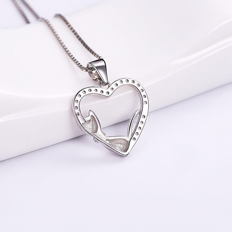 【予約】♡ハートフレーム子猫デザインCZジルコニアネックレス♡シルバー925♡