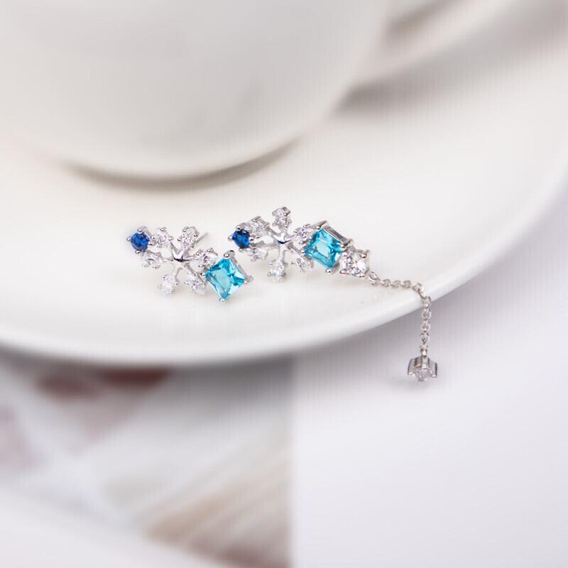 【予約】❆ブルー系雪のデザインCZジルコニアネックレス/ピアス❆シルバー925❆