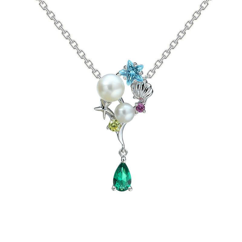 【予約】❀シェルとヒトデデザインマリン風CZジルコニアネックレス❀シルバー925❀