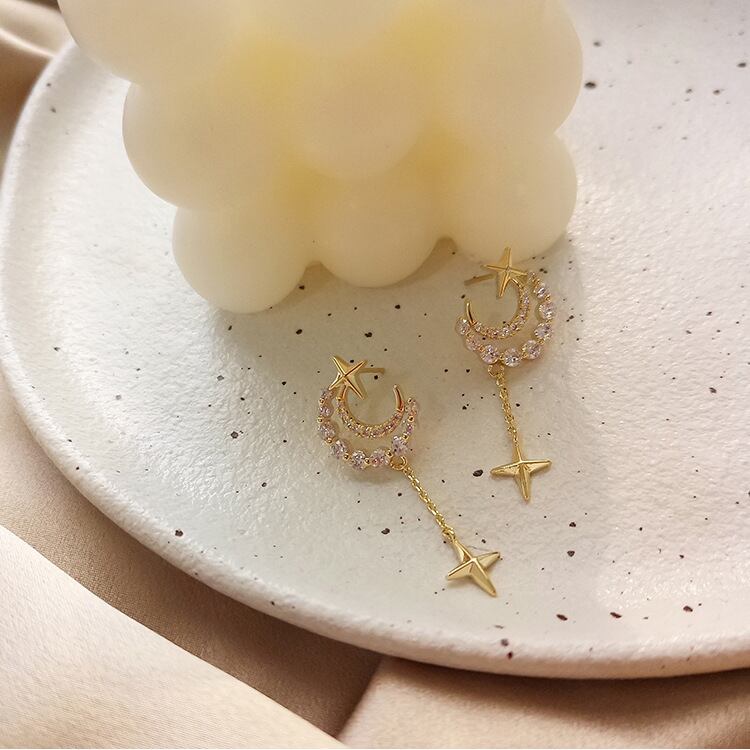【予約】☽ダブルムーン光芒星デザインCZジルコニアピアス☽シルバー925☽