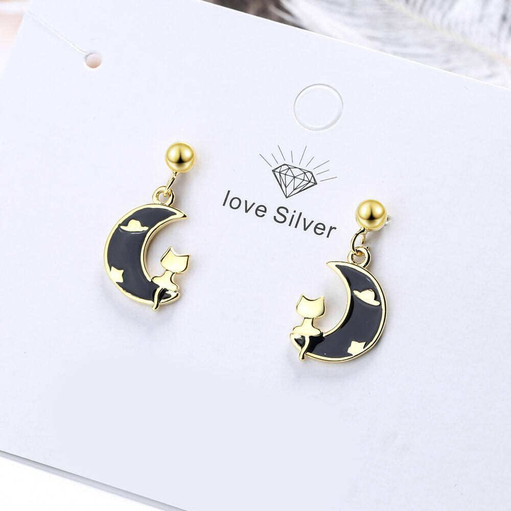 【P2-SG29】☽お座り猫ちゃん和風ムーンデザインピアス☽