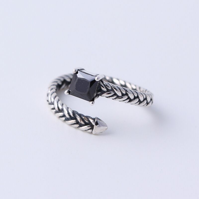 【予約】◇ヴィンテージ風一粒ブラックジルコニア編みデザインリング◇シルバー925◇