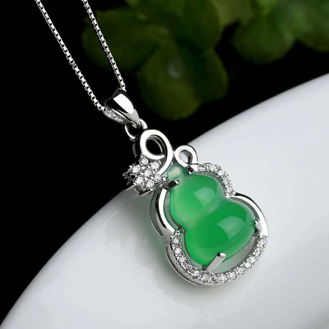 【予約】❀ユニークな瓢箪デザイングリーン系ネックレス一輪フラワー❀シルバー925❀