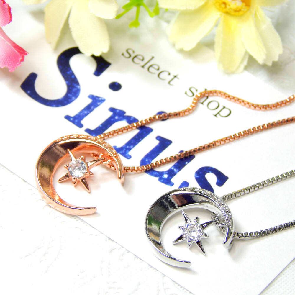 カジュアルからパーティまで幅広いコーディネートに映えるビックムーンプラプラスターデザインジルコニアネックレス。