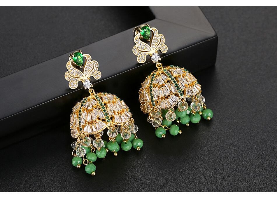 【予約】❀豪華な宮殿風デザインブルー系/グリーン系ジルコニアピアス❀