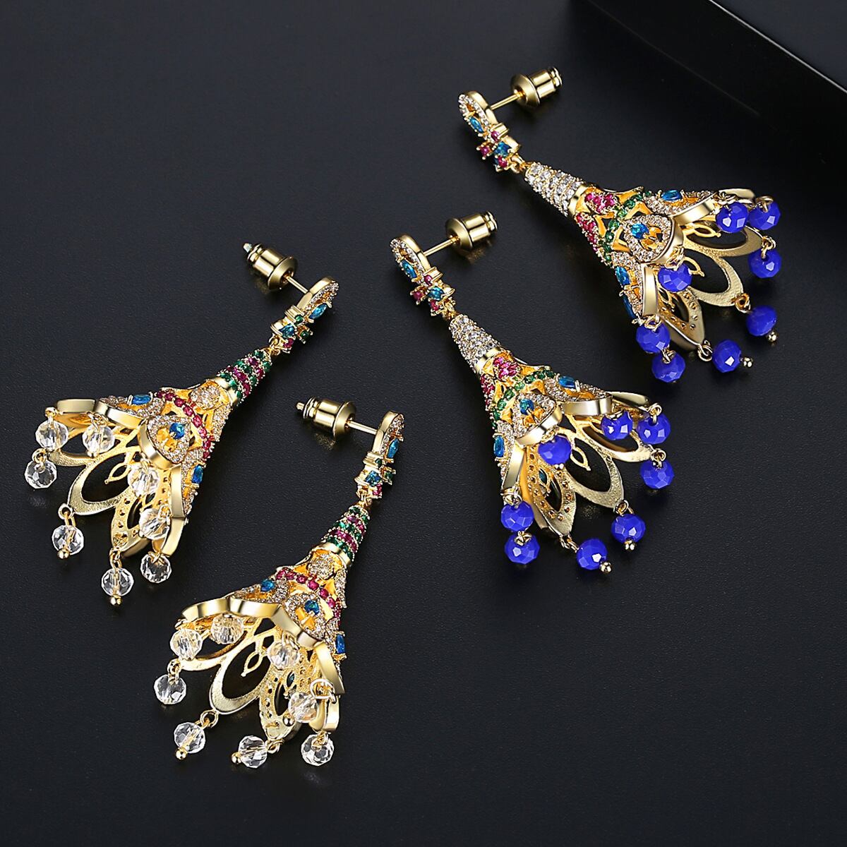 【予約】❀豪華で多彩なツリーデザインブルー/ホワイト系ピアス❀