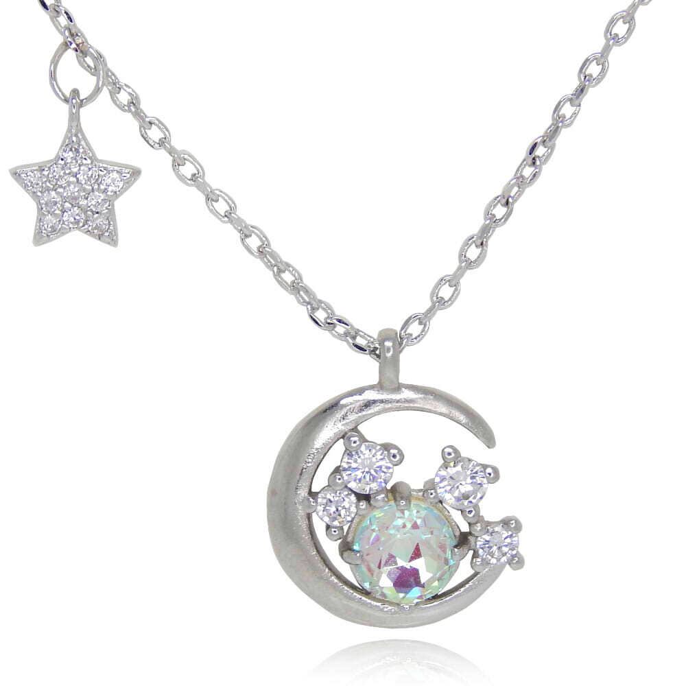 【NC-C26】☆揺れる一つ星オーロラムーンデザインジルコニアネックレス☆
