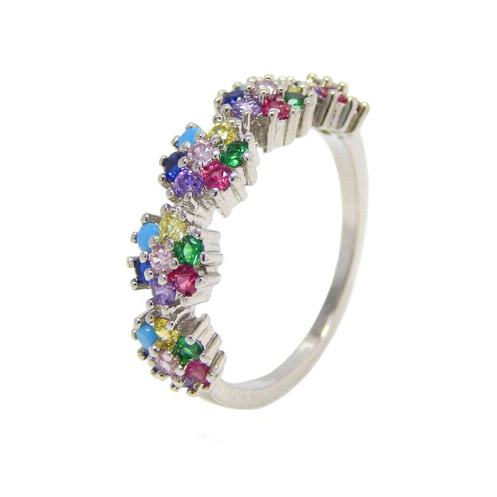 7連多彩なジルコニアフラワーデザインリング【R1-C28】