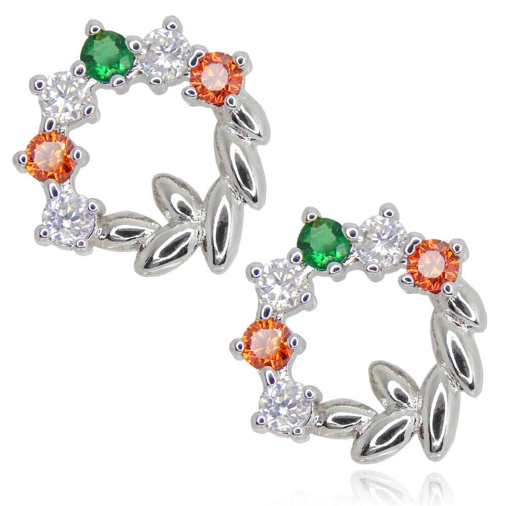 【P2-SG37】❀リーフデザインリース3色ストーンジルコニアピアス❀