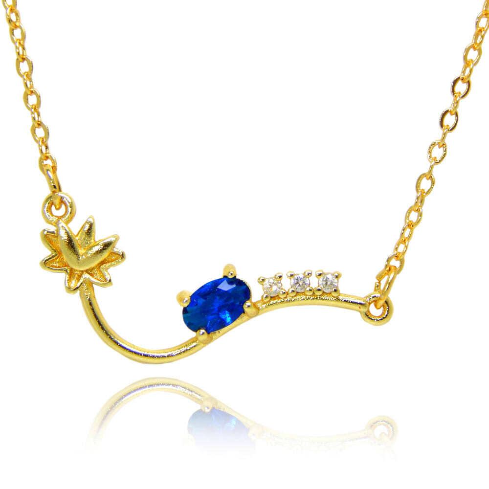 【NC-SA31】❀エレガントな蓮デザイン一粒サファイアジルコニアネックレス❀