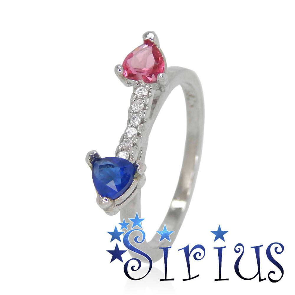 【R1-C34】♡ハート&トライアングルピンク&ブルーストーンリング♡