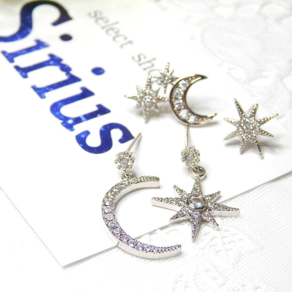 【P1-81】☆2ペアセット星と月モチーフジルコニアピアス☆