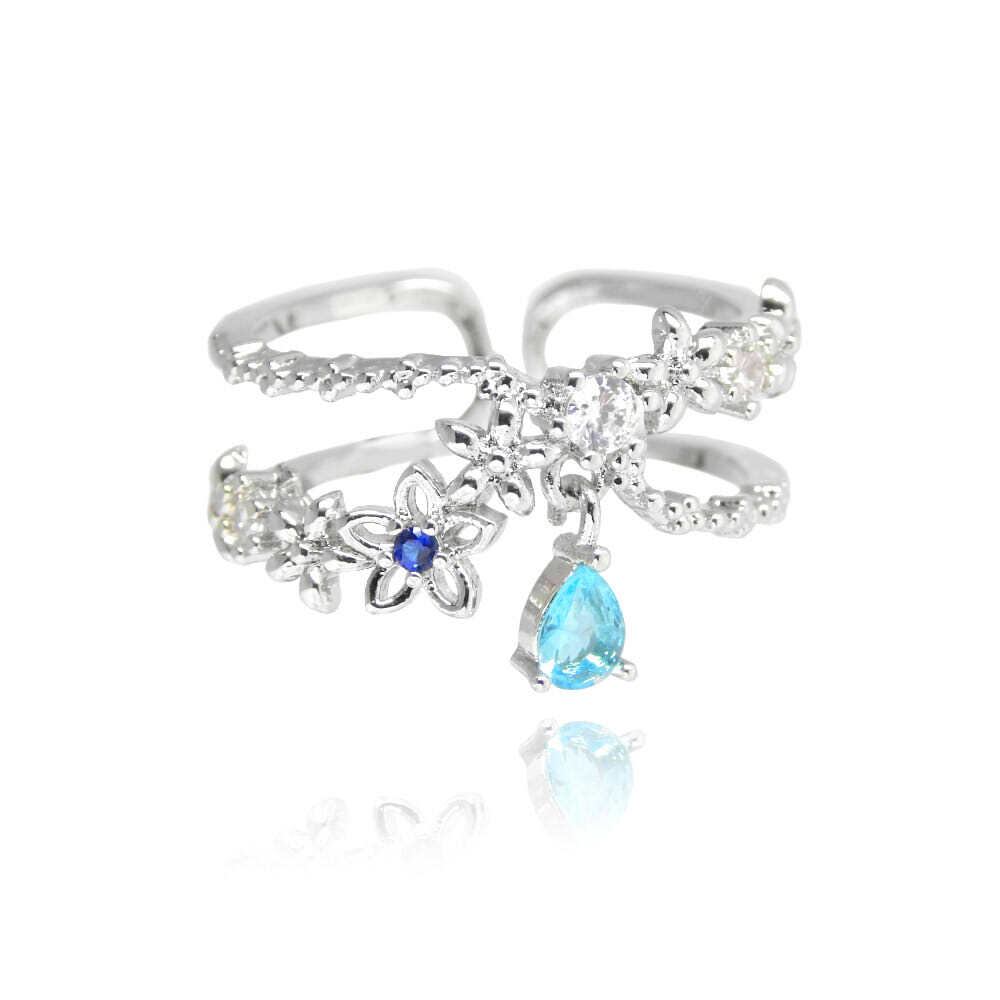 【RF2-21】❀重ね付け風2レイヤー小花&揺れるドロップチャームリング❀