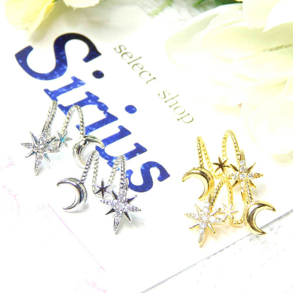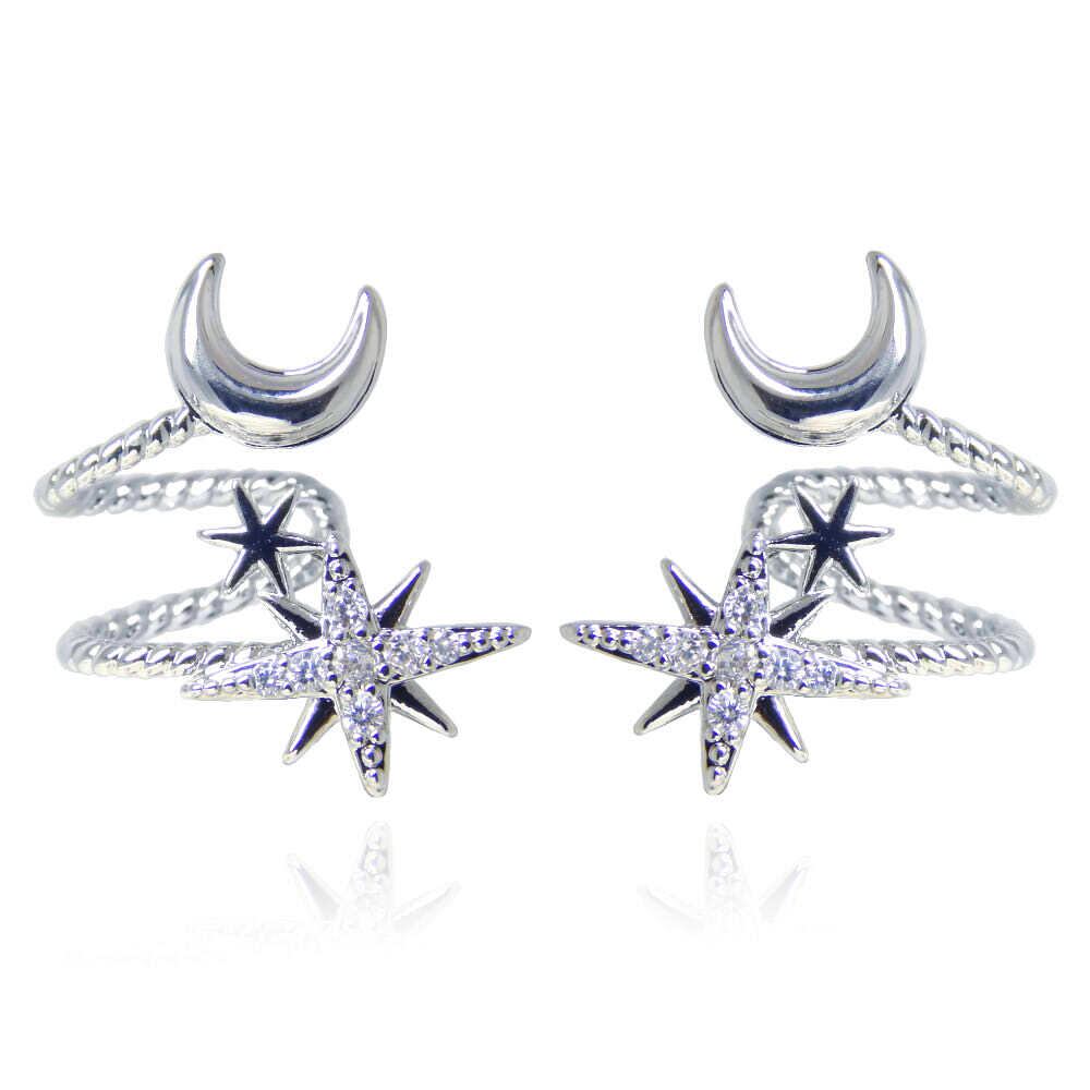 【YKF2-1】☆7連ジルコニアスター&ムーンデザイン両耳イヤーカフ☆