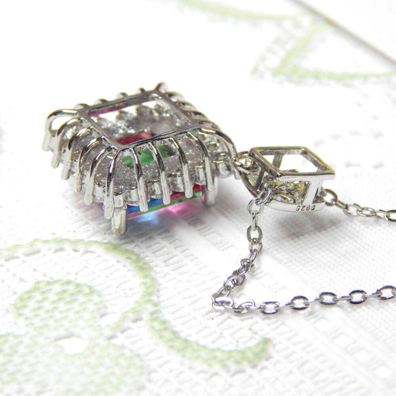 【N3-53】❀ダイヤ型多彩な大粒ストーンネックレス❀
