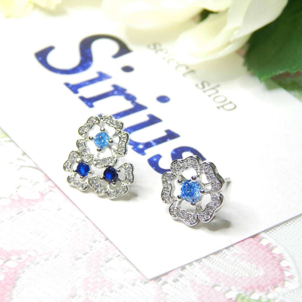 【NRP2-2】❀アシンメトリーフラワーブルー系ストーンピアス❀flour pierced❀