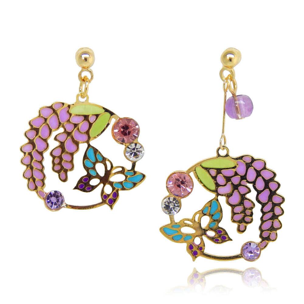 【再入荷】藤好きや、藤シーズンにも!左右で長さが違う、蝶が飛び交うアシンメトリーピアス【PY1-12】